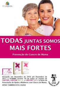 Com início em Dezembro 2016 e término em Dezembro 2017 todas as vendas LIBIFENE reverterão 1% para os projetos de saúde de apoio ao utente com doença oncológica mamaria e ginecológica.