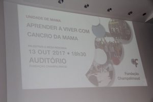 Divulga-se o OPEN DAY – APRENDER A VIVER COM CANCRO DA MAMA – realizado na passada 6ª feira dia 13 Outubro e organizado pela Fundação Champalimaud no qual a ASSOCIAÇÃO PORTUGUESA DE APOIO À MULHER COM CANCRO DA MAMA se fez representar na Mesa Redonda pela sua medica fisiatra – Sofia Cláudio- e sua Fisioterapeuta – Maria Cristina Alves –