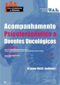No ciclo de “Conferencias às Quintas”, ministradas pela Universidade Autónoma de Lisboa, a APAMCM foi representada pela sua medica ginecologista/obstetra – Dra. Ana Teresa Marujo – na Conferencia subordinada ao tema “Acompanhamento Psicoterapêutico a doentes oncológicos” a convite da Psicóloga Clínica Dra. Maria Bjorn.